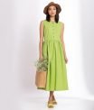 Midi dress with a wide silhouette, Round neckline with wooden buttons detailing. It comes with roomy side pocket on both the side!